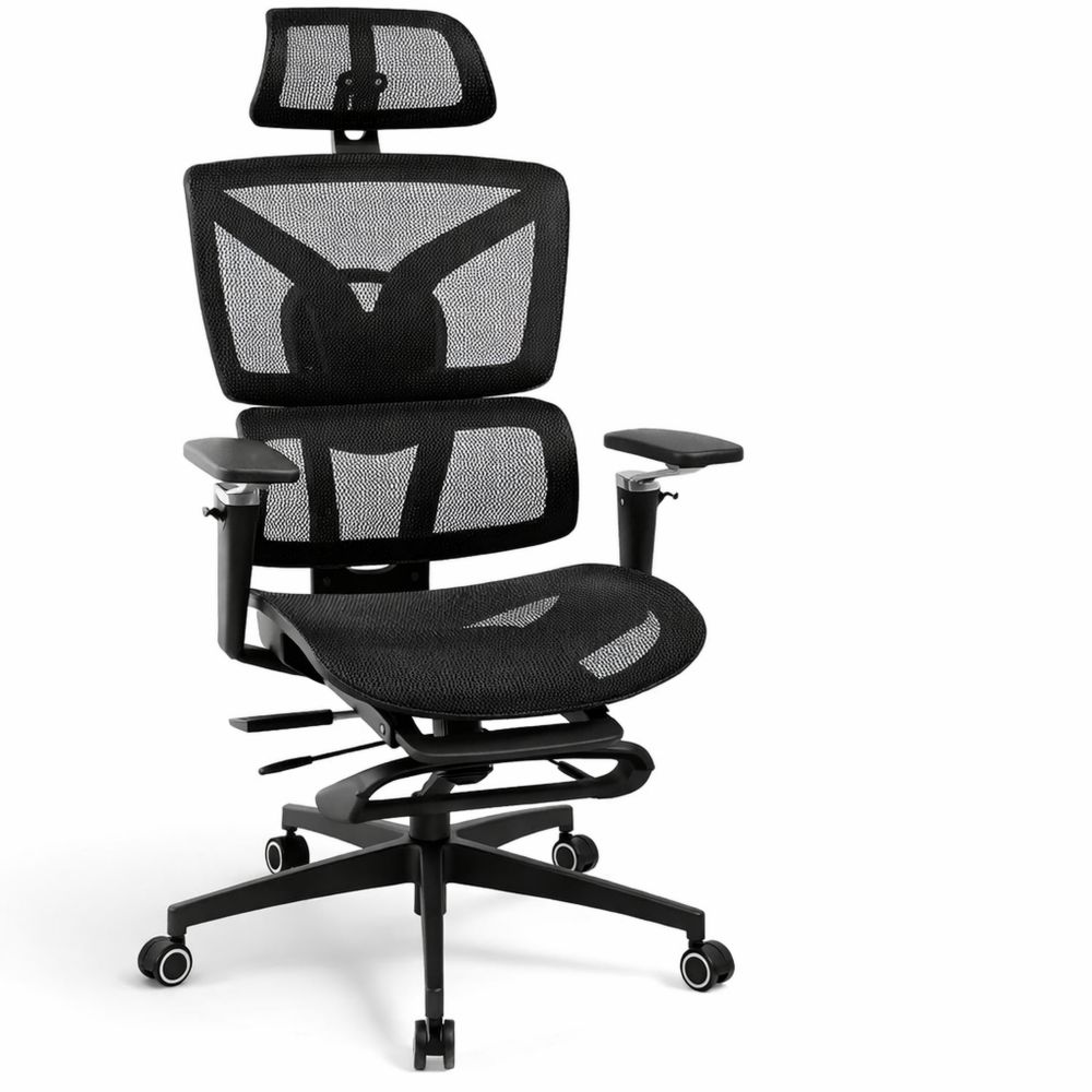 Ergonomischer Schreibtischstuhl mit verstellbarer Fußstütze und Armlehnen