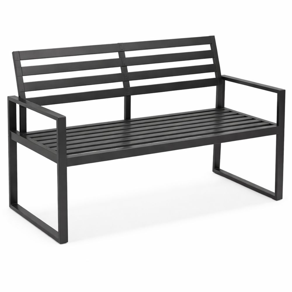 Moderne Gartenbank für Zwei aus Aluminium, wetterfest und rostfrei, dunkelgrau