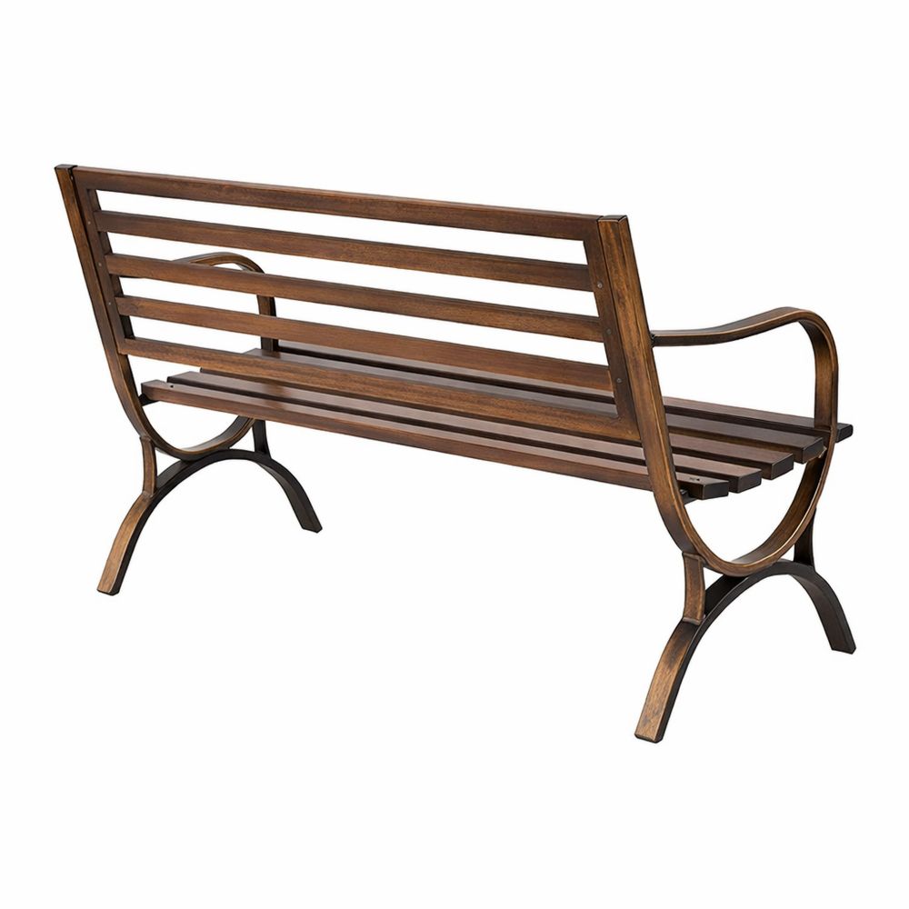 Die Konstruktion aus robusten Materialien sorgt für eine lange Lebensdauer, während die ergonomische Form der Armlehnen und Sitzflächen Komfort bietet. Dies macht die Bank zu einem angenehmen Ort zum Verweilen im Freien.